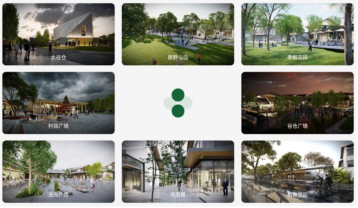 ●一張藍(lán)圖繪到底:整體規(guī)劃仍延續(xù)良渚文化村傳統(tǒng),即“一張藍(lán)圖繪到底”,以2007年加拿大civitas的概念規(guī)劃為雛形,延續(xù)原始村莊的聚落肌理,形成開放式的低密建筑群落;保留原始村口綠地,形成現(xiàn)在的大草坪;既保留了場所記憶,又為消費(fèi)者提供了休閑社交、自由放空的場所,未來也能發(fā)揮其商業(yè)空間的功能。