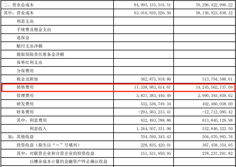 這一點(diǎn)在其Q3財(cái)報(bào)中也有所體現(xiàn),財(cái)報(bào)顯示,前三季度銷售費(fèi)用合計(jì)173 億元,同比增長(zhǎng) 22%,其中,具體到第三季度的銷售費(fèi)用為57億元,同比增長(zhǎng)29.45。