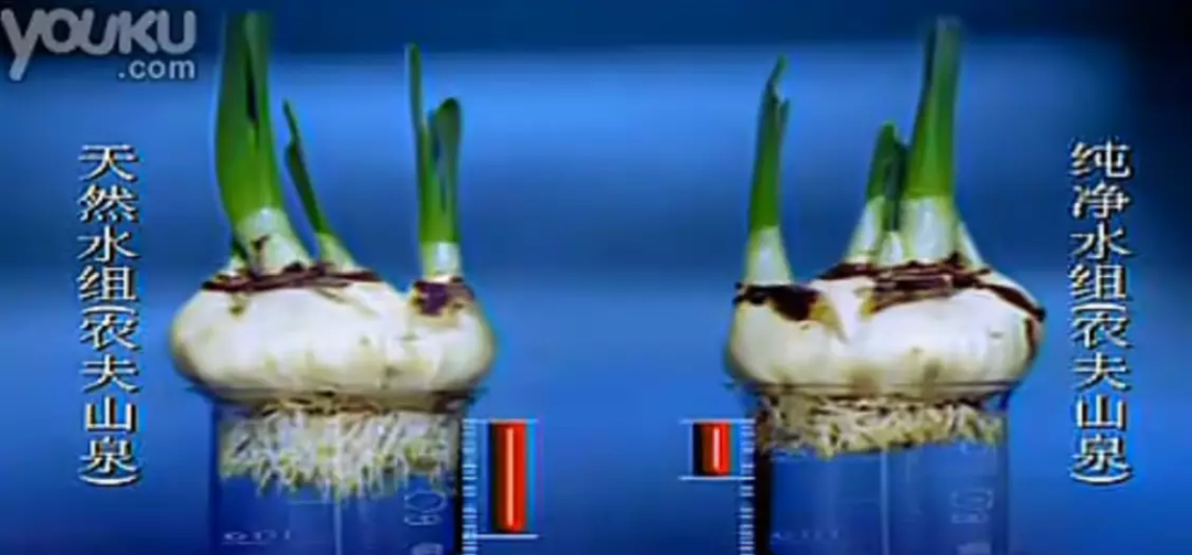 在當(dāng)時國內(nèi)純凈水占比超過95%,天然水不到5%的飲用水市場上,鐘睒睒的決定無疑引起了軒然大波。但農(nóng)夫山泉選擇了硬剛,在電視等媒體上投放廣告,播出了一系列充滿爭議的對照實驗來證明自己的理論。比如用純凈水、天然水養(yǎng)水仙,看誰長得更快。還有分別用純凈水和天然水喂養(yǎng)小白鼠,看哪組小鼠的生命周期更長。