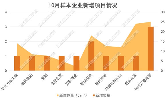 觀點指數(shù)觀察的樣本企業(yè)中,頭部企業(yè)較為活躍,主要包括華潤萬象生活、龍湖集團、珠海萬達(dá)商管等,期內(nèi)新入市項目也均由上述企業(yè)貢獻(xiàn)。