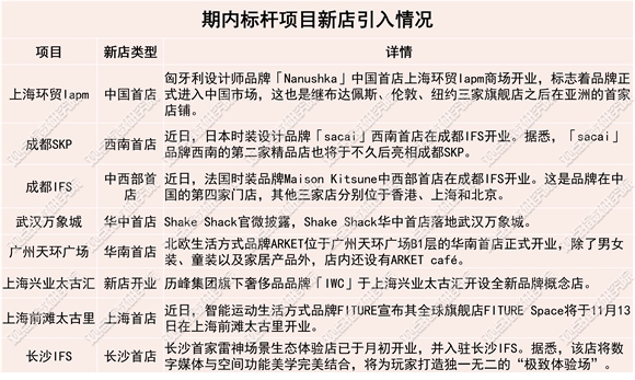 期內(nèi),樣本標(biāo)桿項目繼續(xù)在新店引入上有所收獲。位于上海、廣州、長沙及成都的項目引入了不少具有特色的店鋪,涵蓋中國首店、區(qū)域首店及城市首店,其中主要以國外品牌為主。