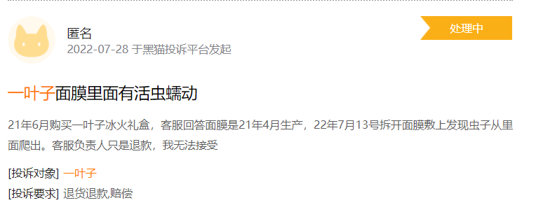 而在黑貓投訴平臺(tái)上,針對(duì)上美集團(tuán)旗下一葉子面膜的投訴也有多起,原因涉及“產(chǎn)品有活蟲(chóng)”、“使用后過(guò)敏”、“虛假宣傳”等。針對(duì)韓束品牌的品牌也有涉及產(chǎn)品問(wèn)題,以及線上銷售長(zhǎng)時(shí)間不發(fā)貨的投訴。