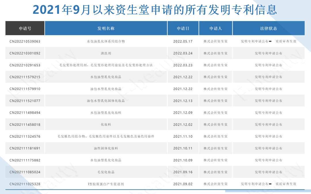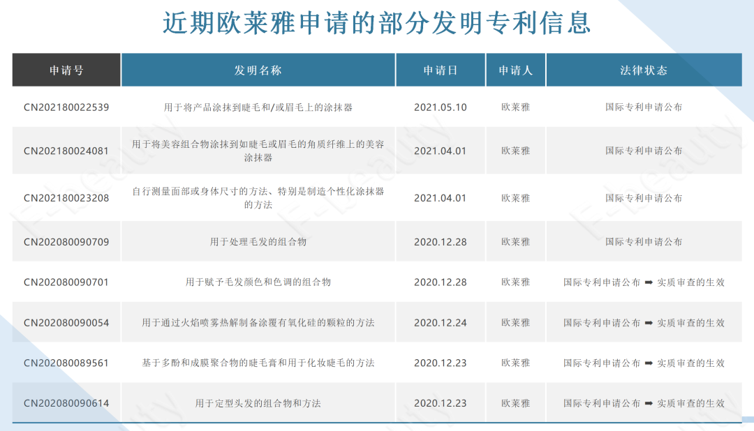 除此之外,據(jù)公開信息顯示,這些國際公司近兩年在發(fā)明專利的申請(qǐng)方向上也各有重點(diǎn)。比如資生堂對(duì)護(hù)膚品的技術(shù)準(zhǔn)備更為關(guān)注,而歐萊雅則更傾向于對(duì)彩妝及科技類產(chǎn)品的鉆研。