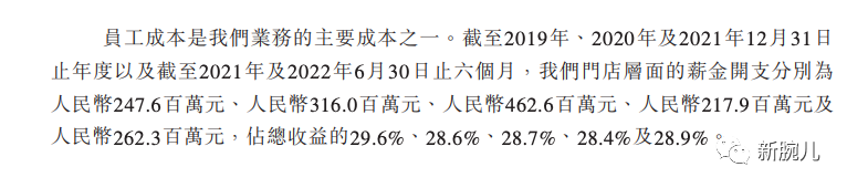 首先是人力成本。據達美樂招股書顯示,2019年、2020年、2021年和2021年上旬及2022年上旬,達美樂門店的員工薪資分別是2.47億、3.16億、4.63億、2.18億和2.62億,占總營收比的29.6%、28.6%、28.7%、28.4%和28.7%。