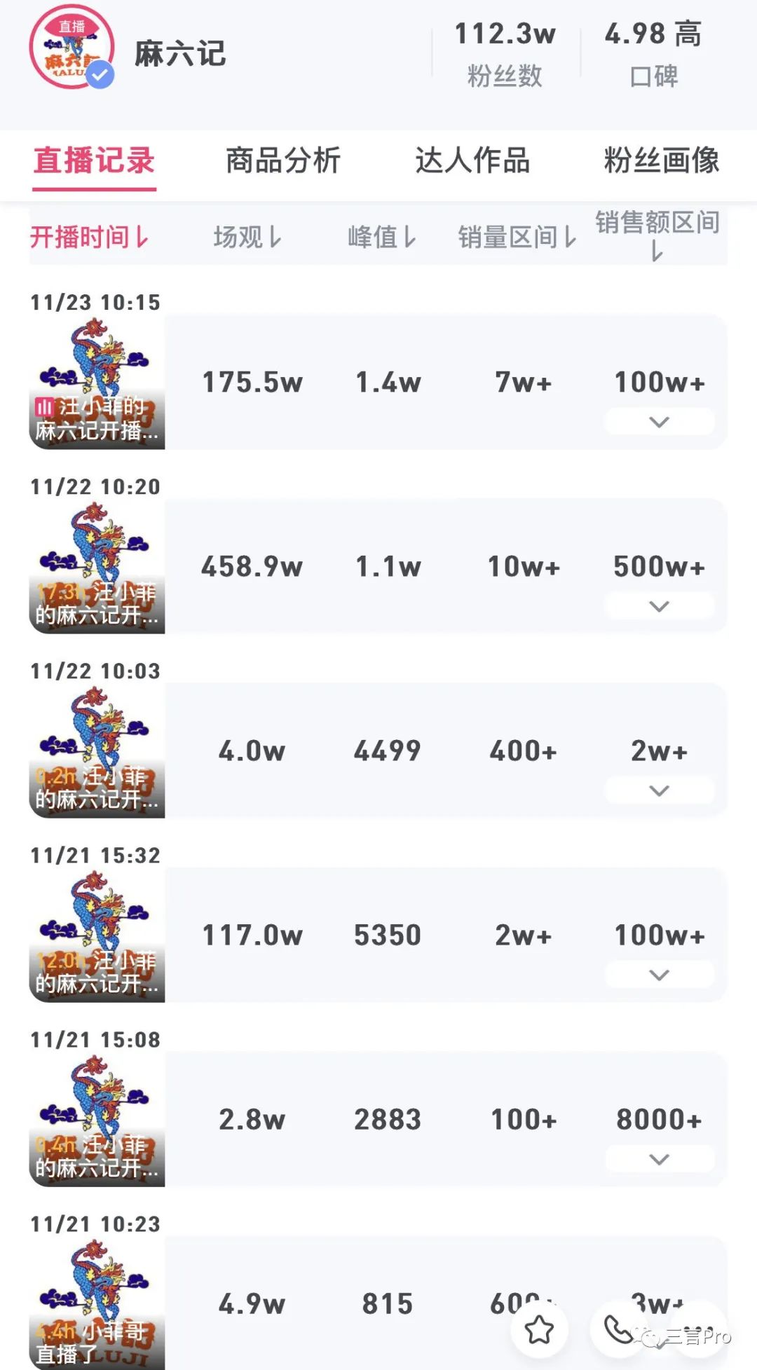 而麻六記的官方抖音號直播帶貨的銷售額也暴漲,此前很難超過20萬,但21日至今,每天的銷售額都突破100萬,22日更是高達500萬,今日銷售額也超過100萬。與張?zhí)m直播間一樣,賣得最好的就是酸辣粉。