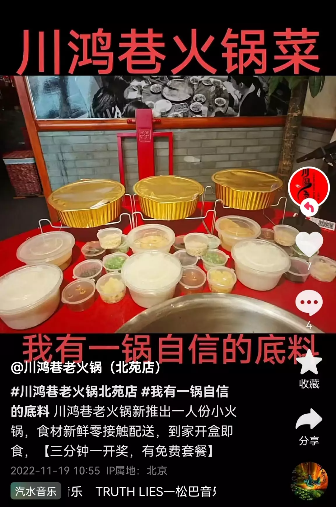 但為了能抓住抖音這個紅利,我們做了特殊的錫箔盒,把火鍋食材標(biāo)準(zhǔn)化。目前我平臺上1-3號鏈接,都是外賣平臺也有。4、5號是抖音平臺上的專屬鏈接。其中4號158元火鍋套餐是賣得最好的,目前賣出了100多份?赡苓@份套餐比較適合家中聚餐的朋友訂購。
