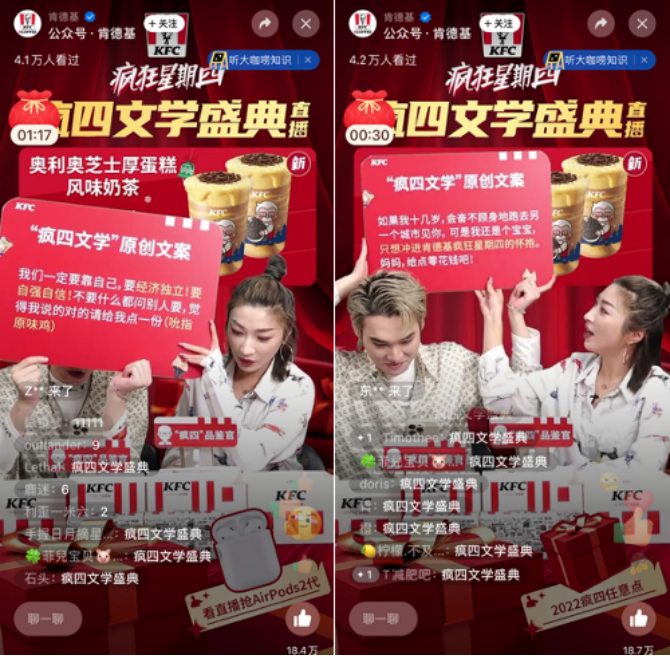 其實(shí),“瘋四文學(xué)”最早可以追溯到2018年肯德基推出的一個(gè)“瘋狂星期四”特價(jià)活動(dòng)。