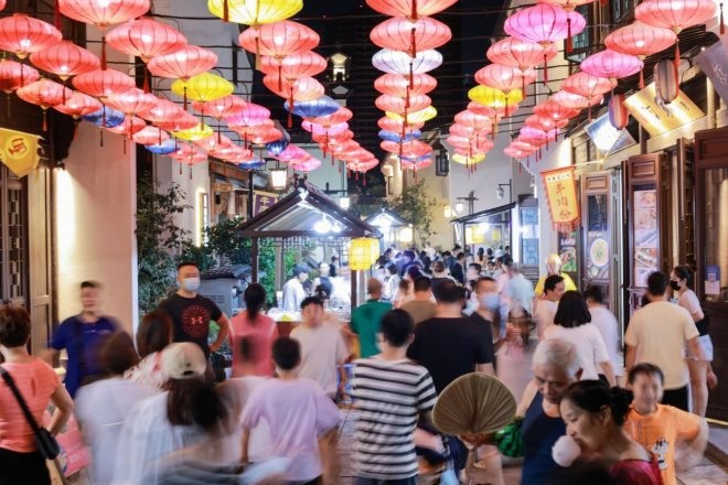 明月高懸夜空,走在閑林埠老街上,市集走紅,消費正熱,人流正旺,熱鬧非凡,千年古埠的魅力氣息恣意飛揚。每個夜晚的熱鬧鮮活背后,是城市生活的溫暖真實。德信唐域商業(yè)將進一步充分發(fā)揮街區(qū)優(yōu)勢,持續(xù)創(chuàng)新引流,以高質(zhì)量、種類多元的活動和場景豐富市民夜間消費體驗,為杭城夜經(jīng)濟發(fā)展注入活力。