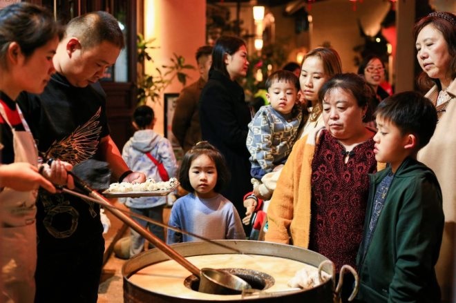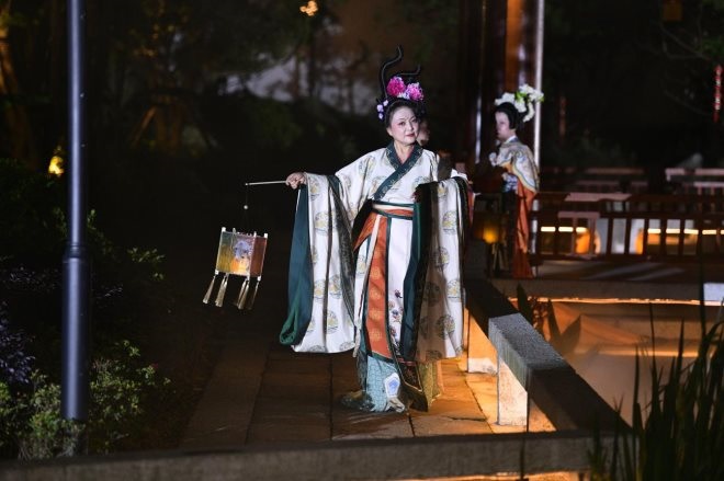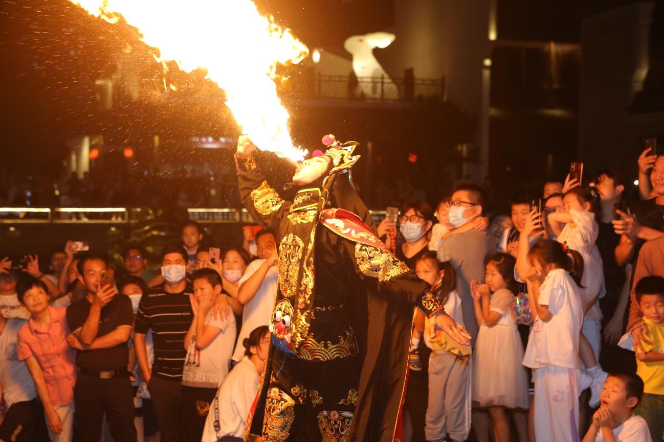 華燈初上,游客們可以觀一場《唐風宋韻最杭州》實景表演大秀,飽覽視覺盛宴;理想村公共空間的讀書會/電影劇場/livehouse音樂會/評話/戲曲,每周如期上演;光影藝術(shù)夜游裝置互動感十足,極光霧森系統(tǒng)夏夜覓清涼……更有杭城首個武林夜市分會場,文創(chuàng)+夜市,為廣大游客帶來川劇變臉、千年皮影、越劇表演、經(jīng)典民樂、銅人藝術(shù)等民俗表演。