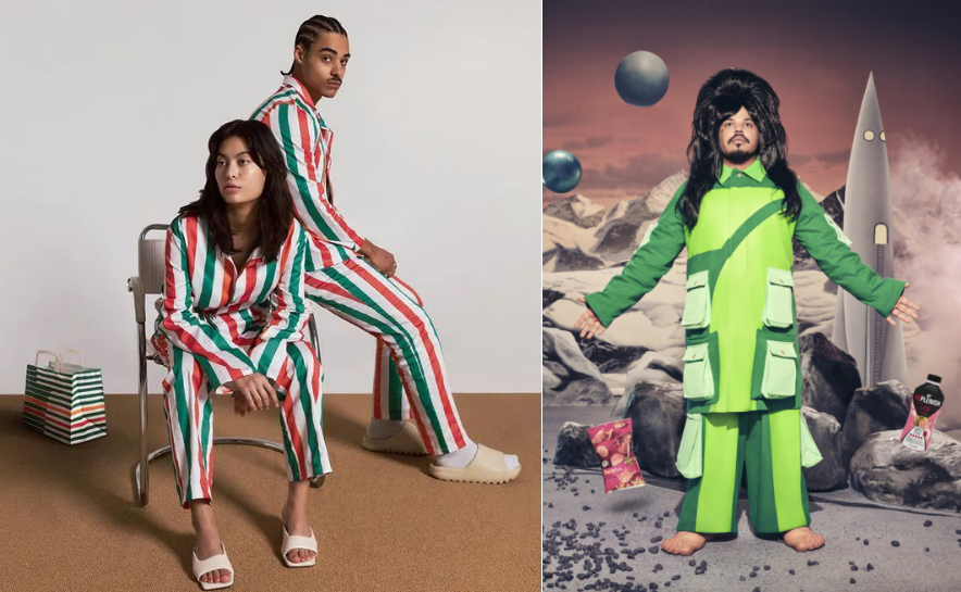 時間線拉回2021年3月,另一家便利店7-11也推出了一款紅白綠條紋睡衣,設計和全家的襪子一樣凸顯自身IP價值。當然,這只是瑞典7-11門店的專屬限量款,約合人民幣240元的價格,也讓大多數(shù)消費者只是看個熱鬧。2021年12月,7-11又與藝人兼設計師Kerwin Frost合作打造了號稱能放18件零食的特殊衣服“Snack Attack Uniform”,不過僅限量發(fā)售500套。這樣看來,7-11賣衣服還是以賣噱頭、賺眼球為主要目的。