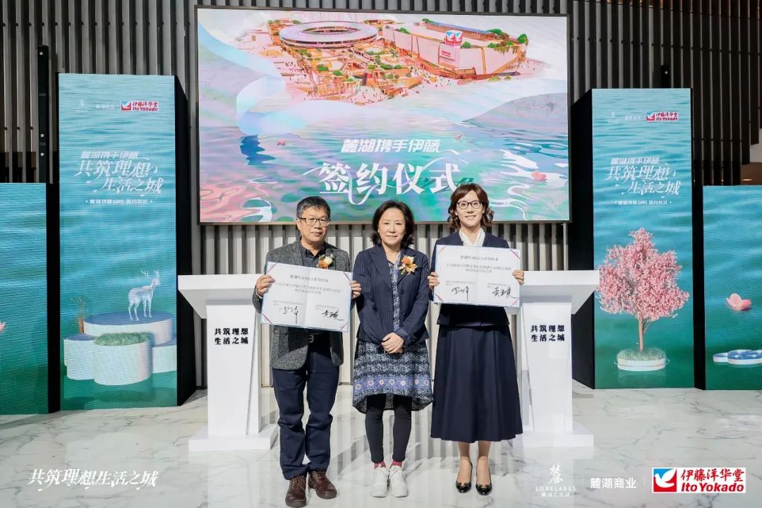 11月25日,以「攜手共筑理想生活之城」為題,麓湖與伊藤洋華堂舉辦簽約儀式,正式確認(rèn)麓湖伊藤天府GMS店入駐麓湖W2項(xiàng)目,成都萬華集團(tuán)總裁CEO羅立平與成都伊藤洋華堂有限公司董事長(zhǎng)黃亞美蒞臨現(xiàn)場(chǎng)簽約并致辭。