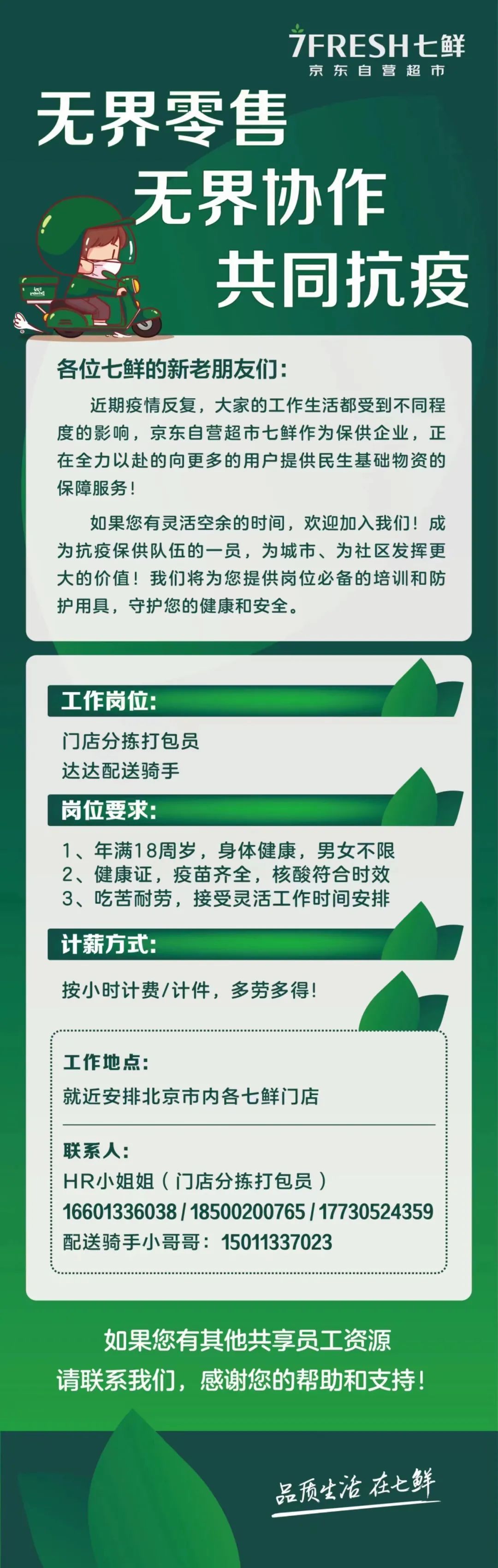 當前,首都防疫保供工作正處于最關鍵、最吃緊的時刻。北京市連鎖實體商超、生鮮零售線上平臺及配送平臺訂單大增,出現(xiàn)了較大數(shù)量的用工需求。