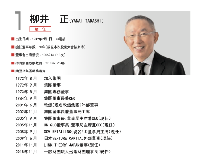 在剛剛公布的新一屆董事會名單中,柳井一海和柳井康治也將繼續(xù)任職。前者除了擔任集團董事、集團高管,還擔任LINK THEORY日本公司代表董事兼CEO;后者則任集團董事與集團高管。
