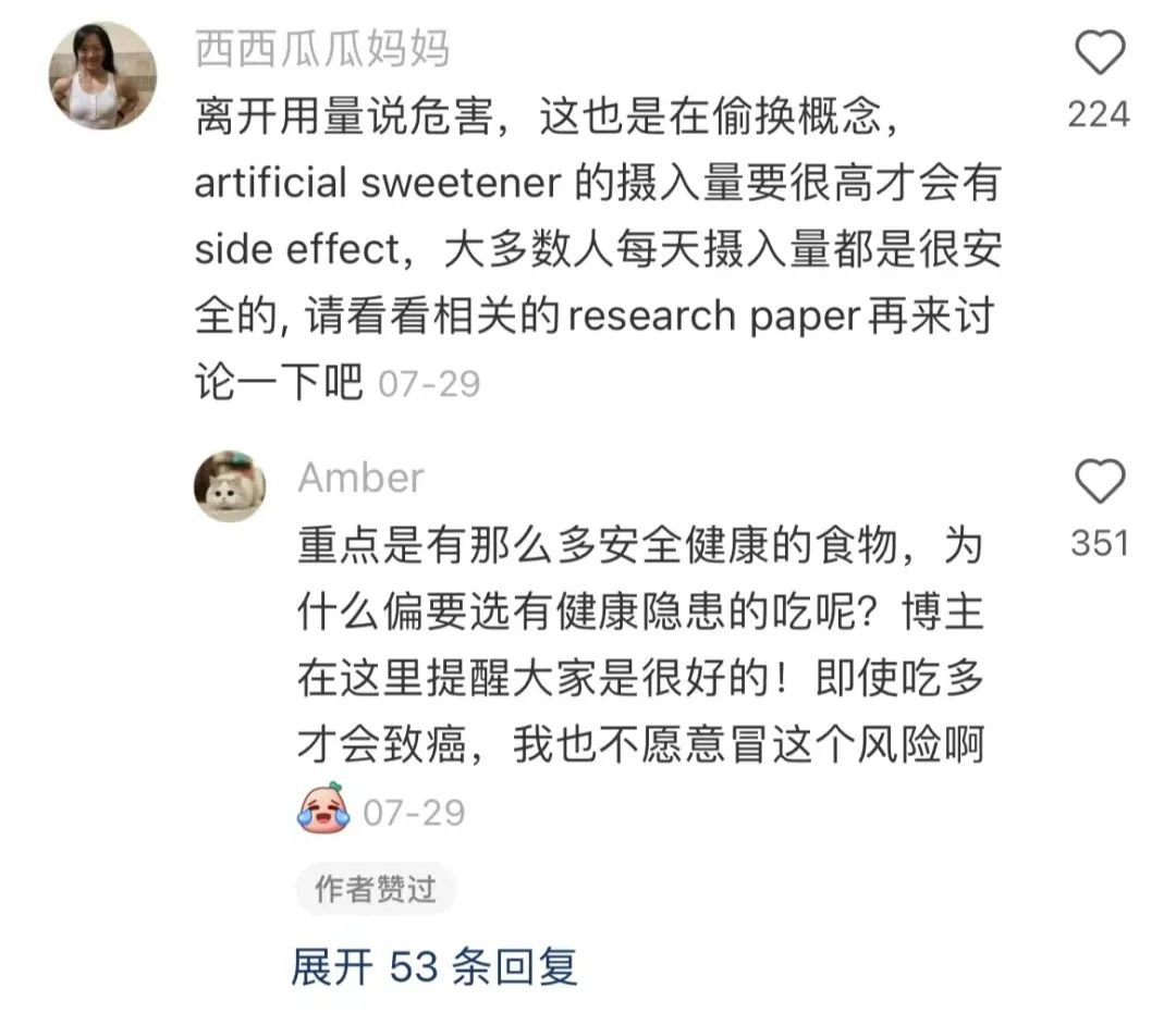 一方面是消費者對于健康的需求的確越來越敏感。小紅書網(wǎng)友Amber在關(guān)于食用人工色素相關(guān)的帖子下,針對“拋開劑量談毒性是不正確”的觀點發(fā)表的反駁:“為什么我們要選擇有健康隱患的產(chǎn)品?”,相信這番言論能夠表達出許多消費者的心聲。