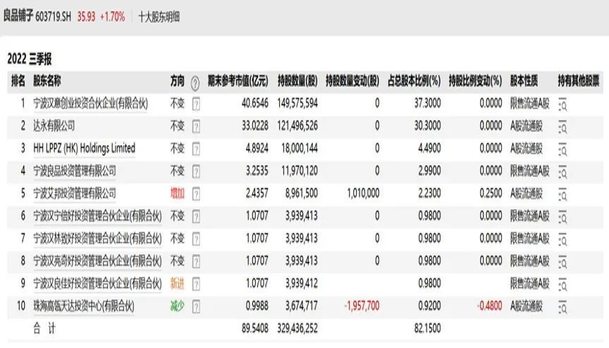而且,通過追溯持倉記錄發(fā)現(xiàn),達永有限對良品優(yōu)品的持股在其上市解禁后未減持一股。