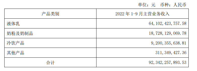 問題主要出在液態(tài)奶上。前三個季度,伊利的液體乳、奶粉及奶制品和冷飲產(chǎn)品的營收分別為641.02億元、187.28億元、92億元,去年同期分別為647.16億元,116.69億元,69.47億元。