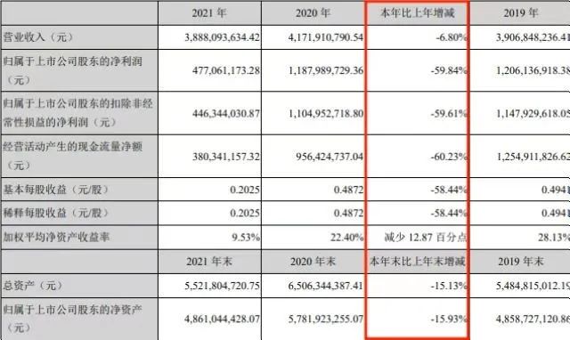 惡性循環(huán)下,自2020年11月開始,南極電商的股價(jià)就一路走跌,大股東頻繁減持。今年4月,據(jù)南極電商發(fā)布的2021年度報(bào)告顯示,去年公司營收為38.88億元,同比下降6.8%,歸母凈利潤為4.77億元,同比下降59.84%,扣非凈利潤為4.46億元,同比下降59.61%,生意越做越窄。