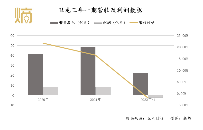 根據(jù)數(shù)據(jù),衛(wèi)龍營收的同比增速從2020年的21.71%降低到2021年的16.5%,到了2022年上半年,營收則較上年同期降低1.83%。