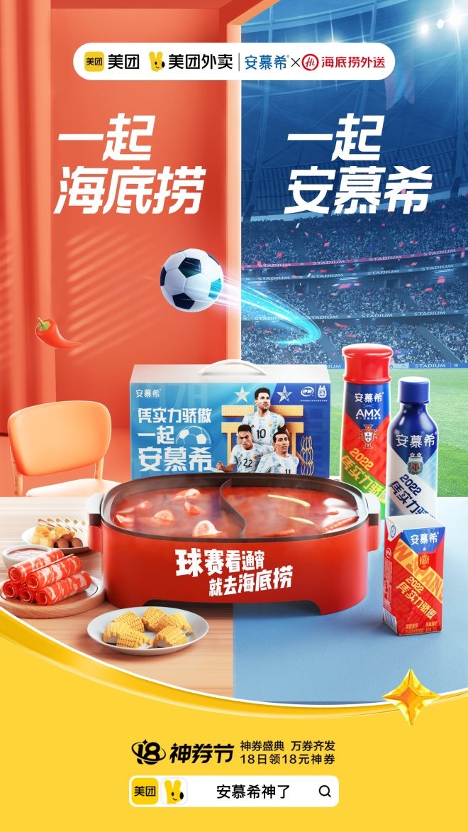 通常,品牌鋪貨和銷售渠道都在超市或便利店,很少在餐飲門店鋪貨。通過此次跨界活動,用戶在海底撈下單同時,可以買到酸奶!爸苯訉⒇洈[進(jìn)海底撈,等于獲得了新的曝光渠道!睋(jù)美團(tuán)閃購相關(guān)負(fù)責(zé)人介紹,本次跨生態(tài)合作整合了外賣強勢營銷IP“外賣神券節(jié)”相關(guān)資源,為品牌提供了超過14億次曝光。同時,“安慕希X海底撈”火鍋配酸奶的專屬TVC,也覆蓋了海底撈全國超過1300家線下門店,從線下也獲得了大量曝光。