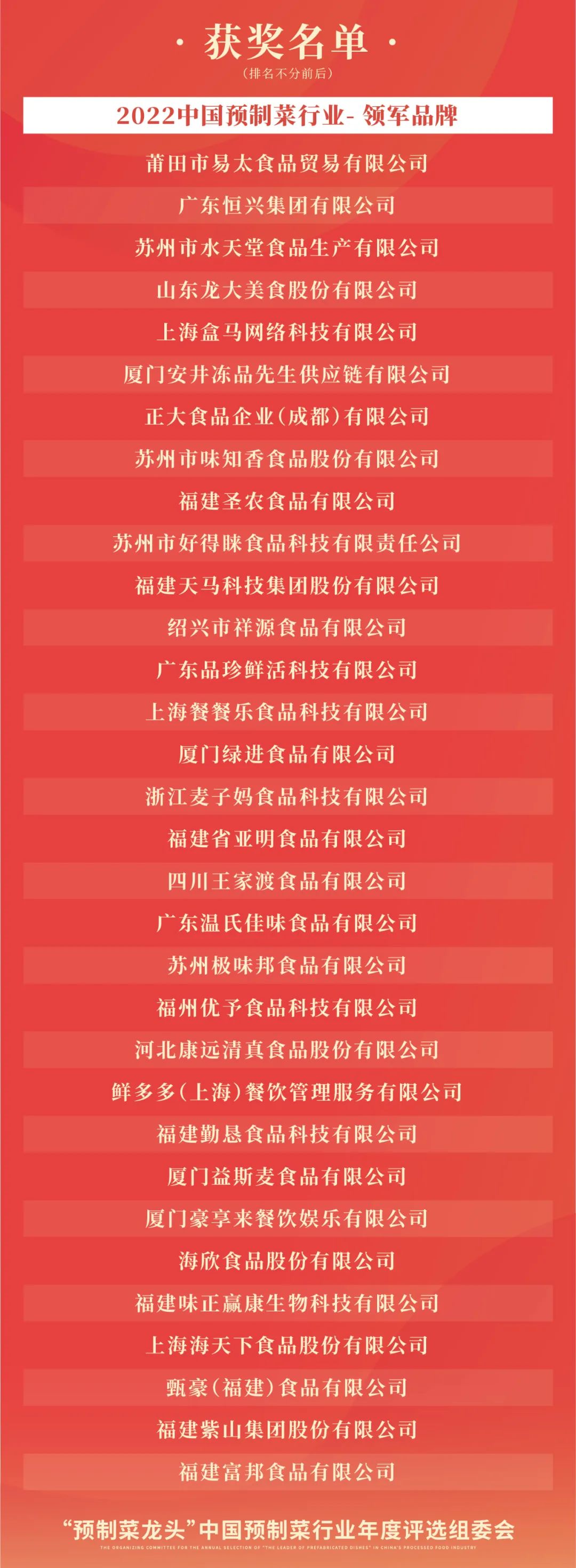 “預(yù)制菜龍頭”2022中國預(yù)制菜行業(yè)年度評(píng)選結(jié)果揭曉!