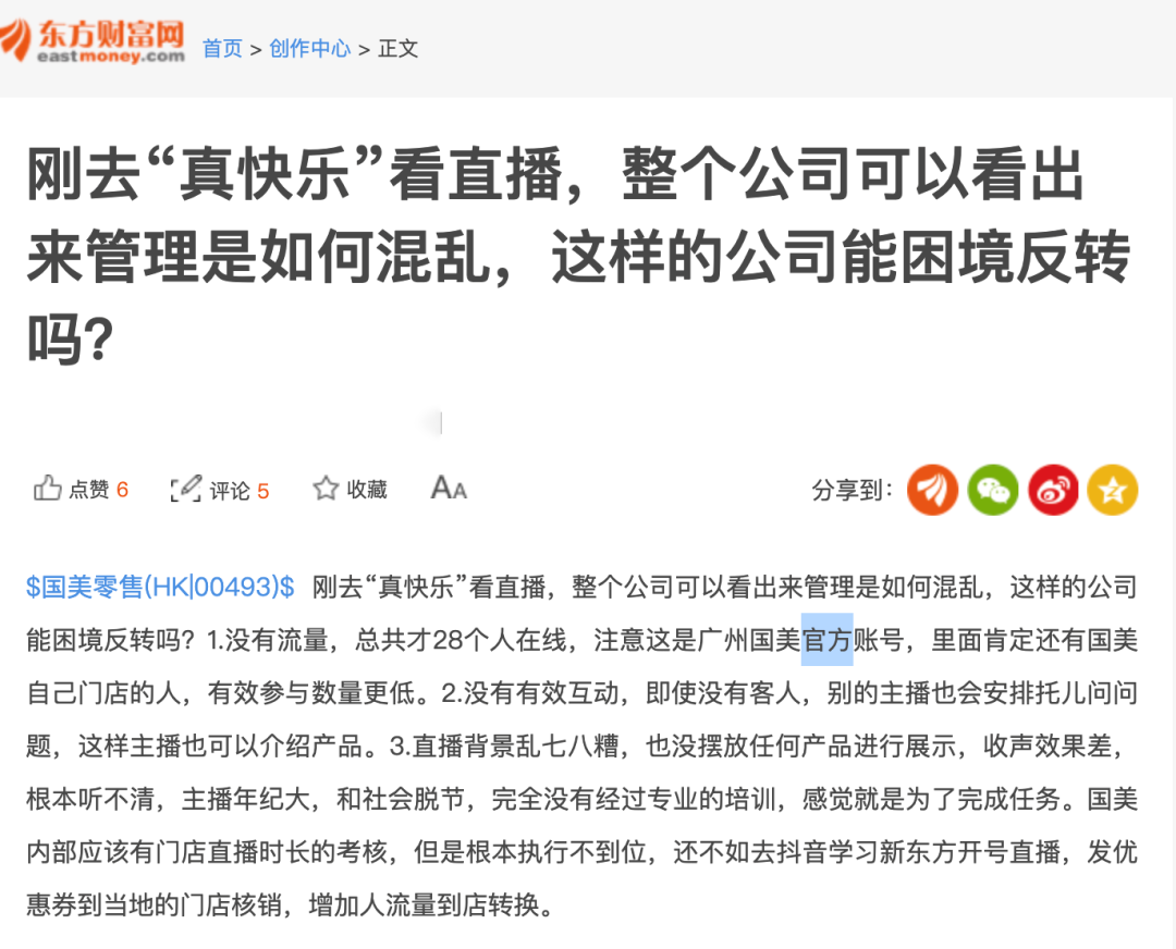今年10月,一位看了真快樂直播的網友@秋日希影在論壇發(fā)布帖子稱,“剛去看真快樂直播,可以看出來整個公司管理是如何混亂,這樣的公司能困境反轉嗎?”該網友表示直播間不僅沒有流量,也沒有有效互動,直播背景更是亂七八糟,并且評價稱“完全沒有經過專業(yè)的培訓,感覺就是為了完成任務!