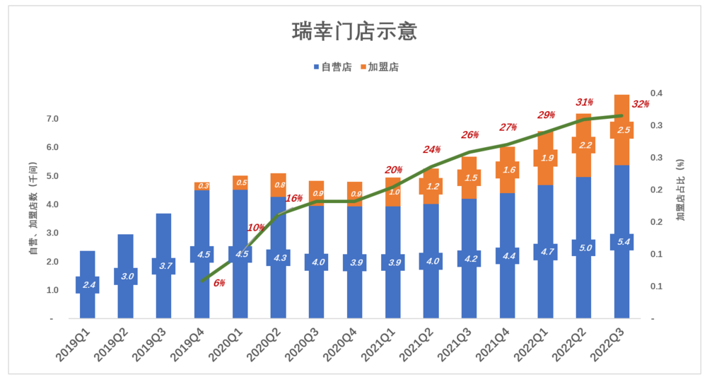 2022年9月末,加盟店達(dá)2473間,占門店總數(shù)的32%。