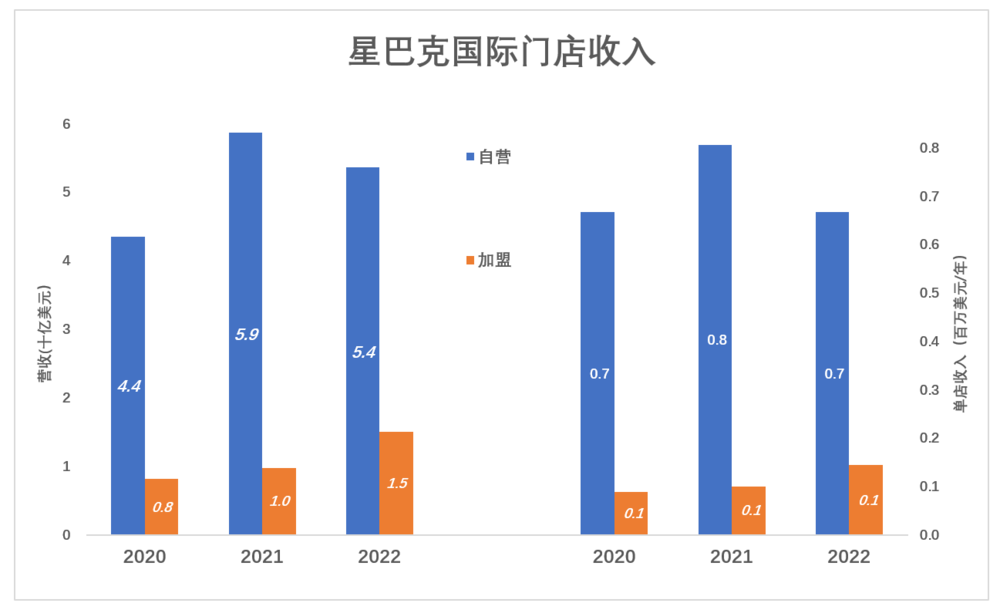 2022財年,國際業(yè)務(wù)加盟店每月帶給星巴克的收入僅為1.2萬美元(折合人民幣8萬元)。