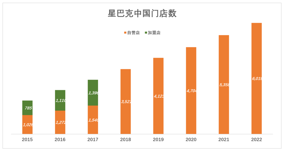 2022財年(截至于2022年10月2日),星巴克在中國擁有6012間自營店。而瑞幸于9月末的門店數(shù)7846間。