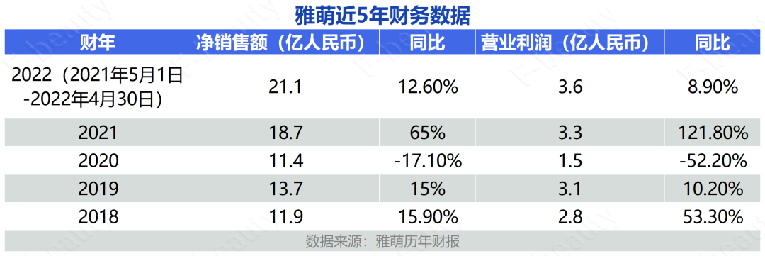 財(cái)報(bào)數(shù)據(jù)顯示,在2022財(cái)年(2021年5月1日-2022年4月30日),雅萌凈銷售額同比增長(zhǎng)12.6%至21.1億元,營(yíng)業(yè)利潤(rùn)增長(zhǎng)8.9%。綜合近五年看,除去受新冠疫情影響的2020年,雅萌的歷年凈銷售額均保持兩位數(shù)的增長(zhǎng)。即使在疫情年遭遇業(yè)績(jī)下滑,但隨后2021年又迅速回彈且超過(guò)疫情前水平。