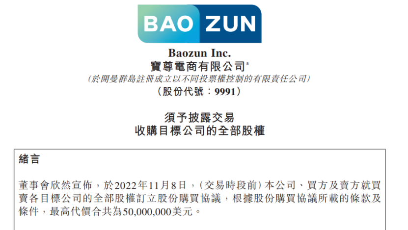11月8日,寶尊電商同時在交易所和公眾號平臺上發(fā)布公告,宣布了收購Gap業(yè)務(wù)的消息。公告稱,寶尊旗下子公司已與The GAP, Inc. 及GAP (UK Holdings) Limited達成股份購買協(xié)議,將以現(xiàn)金交易的方式收購GAP大中華區(qū)業(yè)務(wù),交易基準對價4000萬美元,交易總金額不會超過5000萬美元。該協(xié)議期限為20年,首期為10年,可續(xù)約兩次,每次5年。