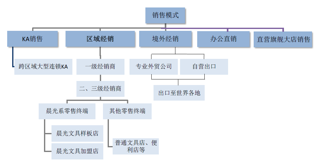 晨光文具上市前,其招股書顯示,截至2014年9月30日,公司在全國范圍內(nèi)構(gòu)建了29家一級 (省級) 合作伙伴、近1,200家二、三級合作伙伴,涉及超過6萬家零售終端 (49067家標準樣板店、7009家高級樣板店以及4856家加盟店) ,各類終端在全國校邊商圈的覆蓋率約80%。