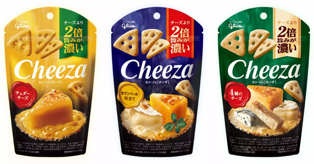 2008年推出的Cheeza芝士脆片靈感則來(lái)源于在酒吧或者餐廳常用于搭配酒飲食用的芝士。產(chǎn)品定位于日本市場(chǎng)首創(chuàng)的天然芝士零食,以天然芝士為主要原料,通過調(diào)整芝士種類與配比和加工工藝,將天然芝士的美味濃縮在脆片之中,還原烤芝士的美味。
