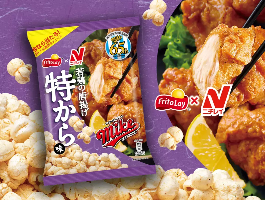 這一次,日本爆米花市場(chǎng)銷量第一的mike和日本冷凍炸雞市場(chǎng)銷量第一的日冷「特から®」進(jìn)行了聯(lián)名,以秘制醬油調(diào)味汁和辛香的炸雞外皮為原型開發(fā)了新品。