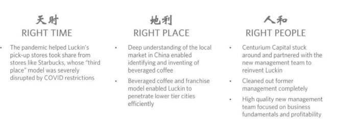 如此困境之下,瑞幸只花了兩年就取得現(xiàn)在的成績(jī)肯定是做對(duì)了一些什么的,就像雪湖資本研報(bào)里概括的那樣,“天時(shí)地利人和”。