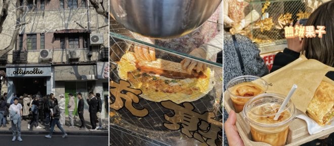 今年2月,上海富民路上有一家“煎餅果子咖啡店”,將中式早餐+咖啡的話題帶火了,不少網(wǎng)友不惜為其排隊一個多小時。