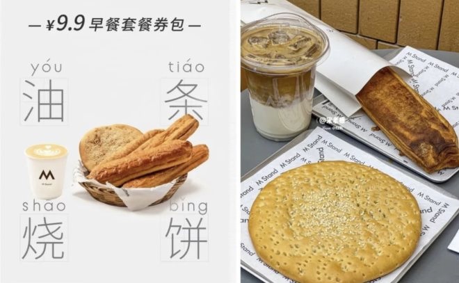 近日,M Stand官網(wǎng)宣布推出油條燒餅配咖啡套餐,牛肉燒餅、油條可頌(原味、提子味)、香腸油條可頌,配上一杯咸芝士拿鐵,中西合璧巧妙碰撞出火花。