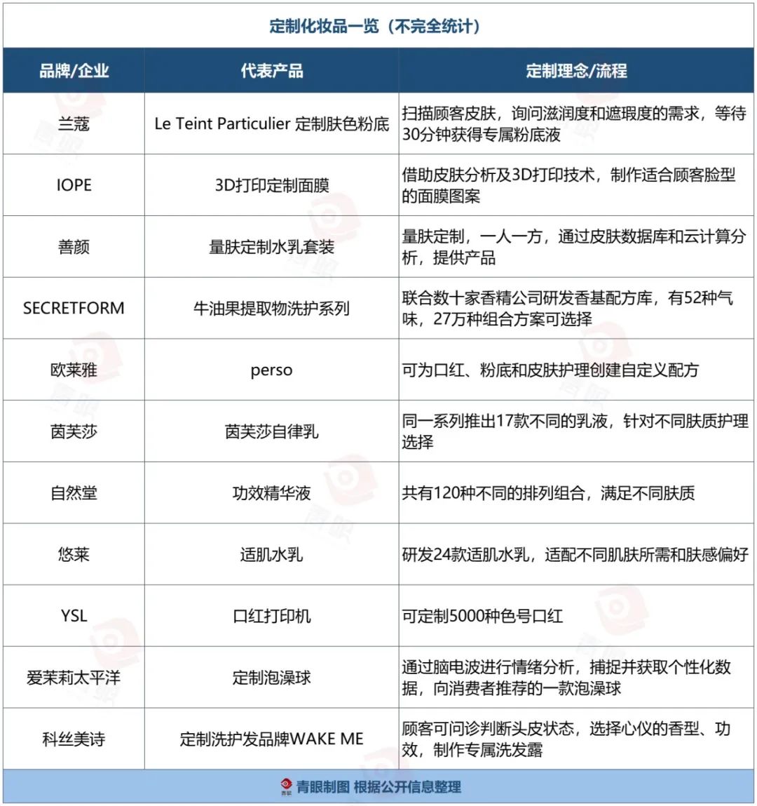 青眼粗略統(tǒng)計發(fā)現(xiàn),包括歐萊雅、資生堂、愛茉莉太平洋、自然堂、科絲美詩等10余家企業(yè)都推出了新式個性化定制產(chǎn)品。