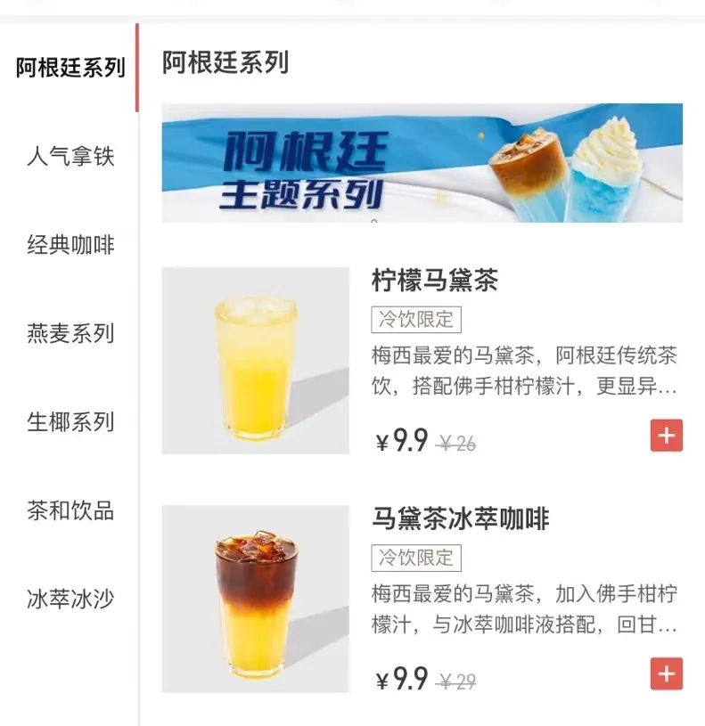 瑞幸咖啡創(chuàng)始人陸正耀的新品牌庫迪咖啡推出了“阿根廷系列”,其中主推飲品包括檸檬馬黛茶、馬黛茶冰萃咖啡。元?dú)馍謧涫荜P(guān)注的“元?dú)饪蓸贰,也在配料里使用了馬黛茶,用于取代傳統(tǒng)可樂的人工咖啡因,而元?dú)馍值牧硪黄放啤巴庑侨恕蹦芰匡嬃希瑒t最新推出了馬黛茶口味飲料。