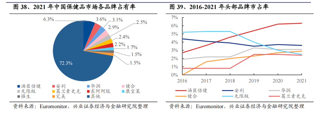 不過,在硬幣的另一面,我們也要看到,前進步伐不止的中國保健品市場仍處在成長初期,尚未從滲透率邏輯過渡到集中度邏輯,格局非常分散。