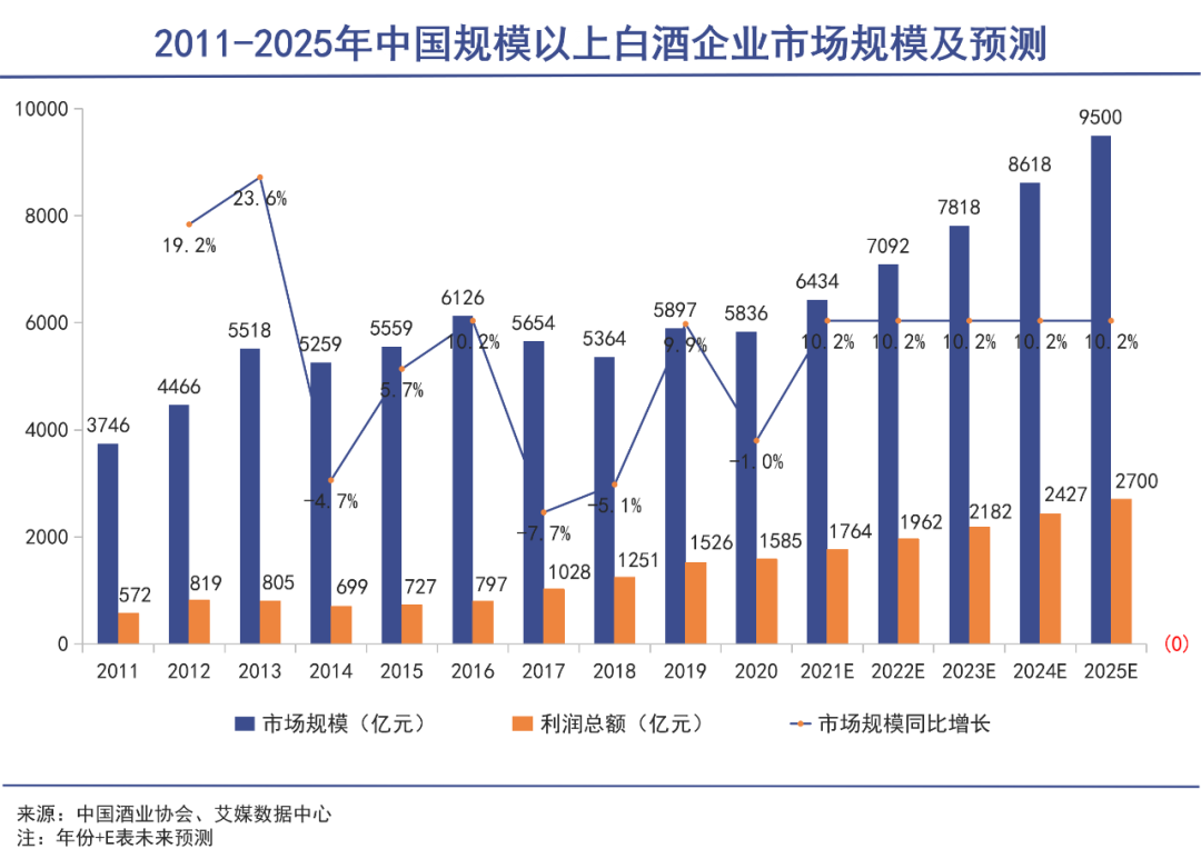 一個(gè)明顯的例子是,根據(jù)中國(guó)酒業(yè)協(xié)會(huì)數(shù)據(jù),光瓶酒市場(chǎng)規(guī)模從2013年的352億元增長(zhǎng)到2021年的988億元,復(fù)合增速約14%;2022-2024年預(yù)計(jì)年均增速可達(dá)16%,2024年市場(chǎng)規(guī)模將超過(guò)1500億元。