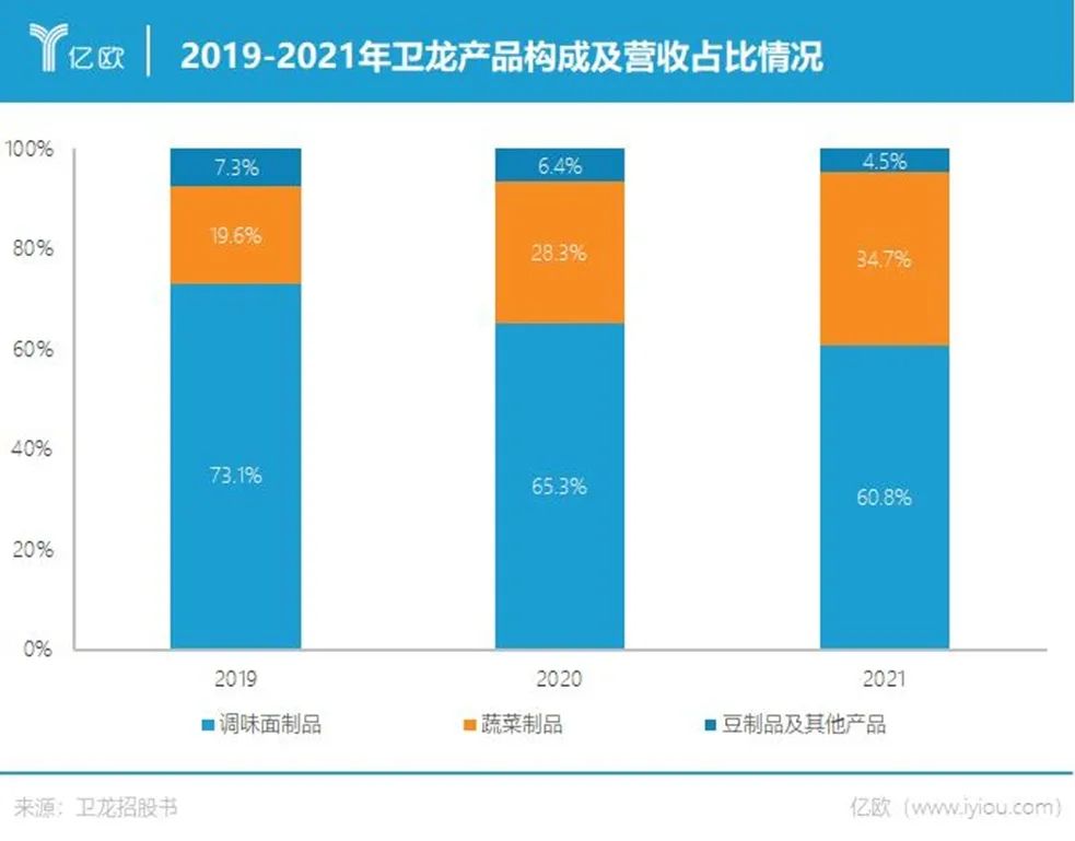 多元化探索有一定作用?梢钥吹剑陙碚{(diào)味面制品的營(yíng)收占比明顯有所下降,而蔬菜制品收入占比已經(jīng)從2019年的19.6%上漲到2021年的34.7%。