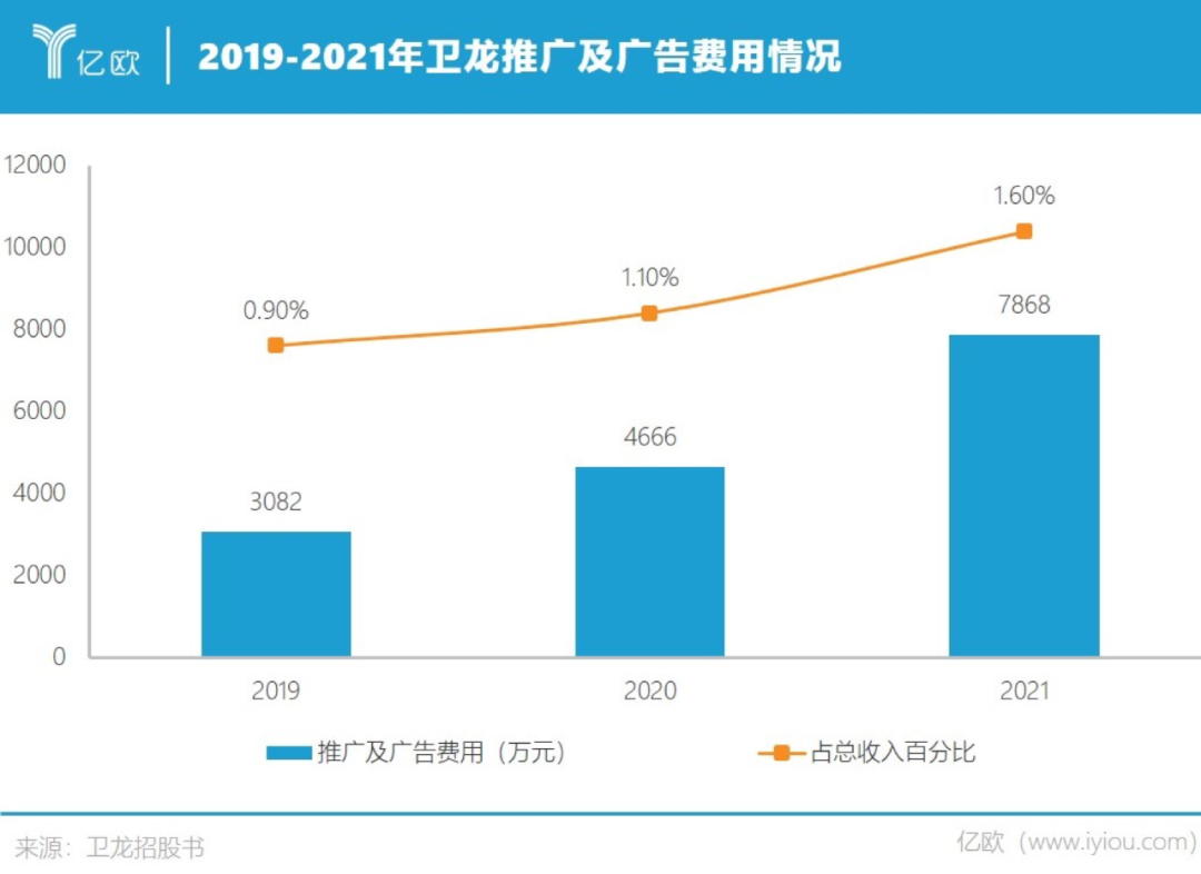 為此,衛(wèi)龍每年也要付出一筆不菲的營(yíng)銷費(fèi)用。招股書顯示,2019-2021年,衛(wèi)龍推廣及廣告費(fèi)用從3082萬(wàn)元上升至7868萬(wàn)元,三年間增長(zhǎng)了1.56倍。