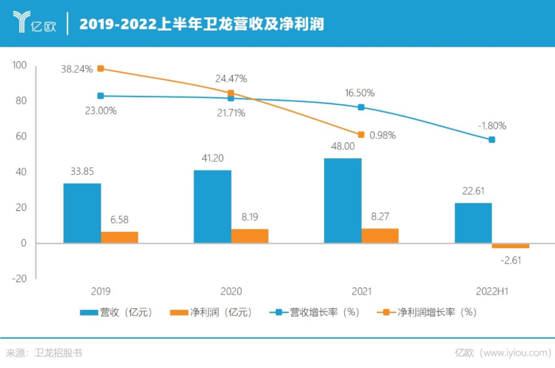 招股書數(shù)據(jù)顯示,2019-2021年,衛(wèi)龍的營(yíng)收同比增速分別為23%、21.71%、16.5%;而在2022年上半年,衛(wèi)龍的營(yíng)收直接同比下滑了1.8%。