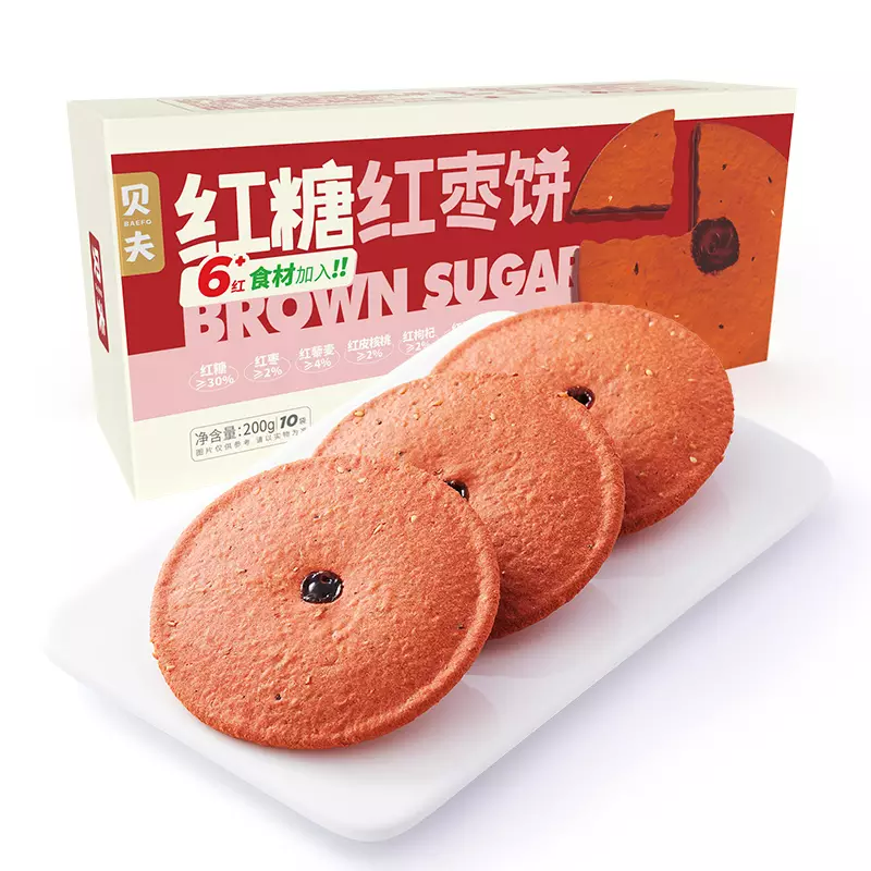 在烘焙品類,貝夫推出的紅糖紅棗餅,添加有紅枸杞、紅皮核桃、紅豆、紅棗、紅藜麥、紅糖,六種紅色養(yǎng)生食材。以酥脆的粗糧外殼包裹香甜綿韌的紅糖和有嚼勁的內(nèi)陷,不失為冬日的暖心小點。