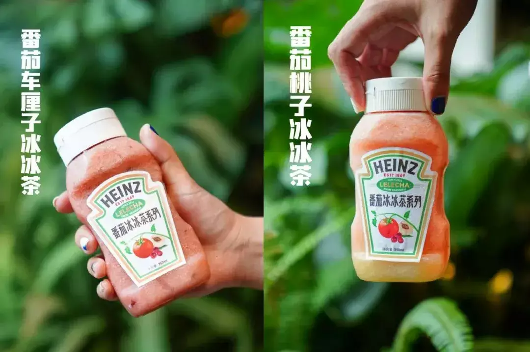 此前,樂樂茶與亨氏聯(lián)名推出番茄冰冰茶系列新品。包裝設(shè)計上采用亨氏經(jīng)典的番茄醬瓶造型,共有番茄桃子冰冰茶、番茄車厘子冰冰茶兩個口味,是在沙糖番茄冰沙基礎(chǔ)上分別添加桃果肉或車厘子果肉制得,酸甜清爽,好喝又好玩。