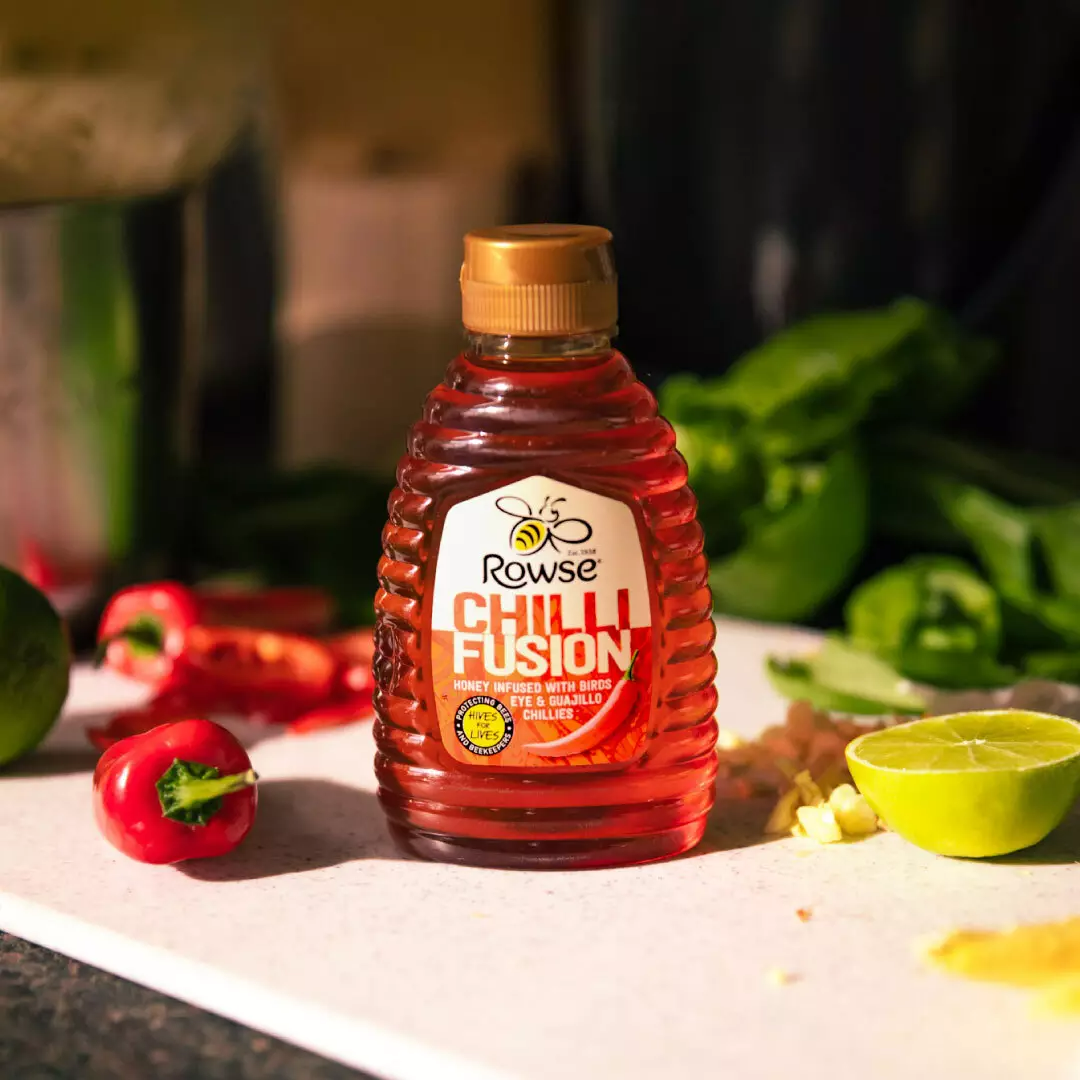 Rowse Chilli Fusion Honey是一款含辣椒的蜂蜜,產(chǎn)品僅采用蜂蜜,泰國辣椒(Birds eye chillies)和瓜吉洛辣椒(Guajillo)三種成分制成。辣椒的加入不僅使蜂蜜的顏色呈現(xiàn)誘人的亮紅色,也帶來了更豐富的甜辣味體驗,擴大了產(chǎn)品在烹飪加工時的作用范圍。