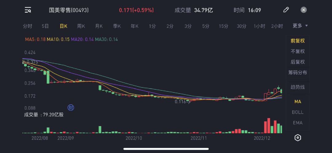 圖/國美零售股價(jià)走勢 來源/老虎證券 燃次元截圖