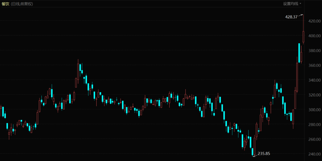 最近餐飲股迎來(lái)了幾年來(lái)難得的高光時(shí)刻。從11月底開(kāi)始,出現(xiàn)了一段時(shí)間的持續(xù)性行情。