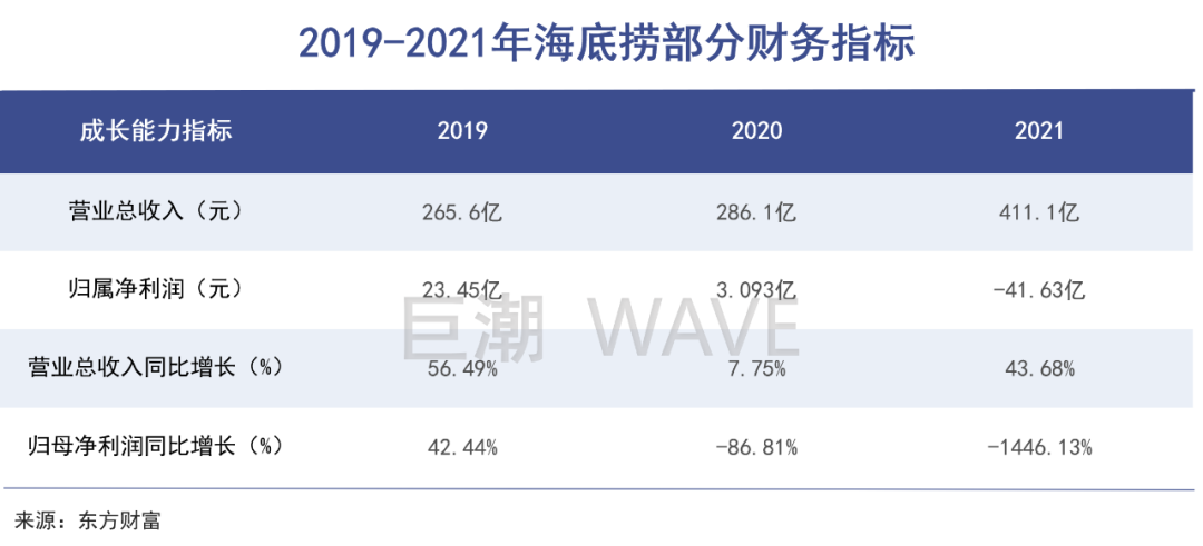 2020年和2021年,海底撈依靠門(mén)店的擴(kuò)張營(yíng)收有所上漲,但是凈利潤(rùn)連續(xù)暴跌86.81%和1446.13%,2019年仍然盈利23.45億元的它,2021年已經(jīng)虧損超過(guò)41億元。截至2022年上半年,海底撈仍未走出虧損的陰影,凈利潤(rùn)為-2.663億元。