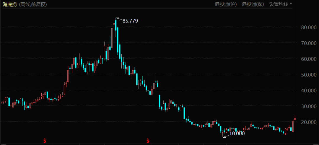 海底撈一段時(shí)間以來(lái)大漲超過(guò)65%,股價(jià)反彈至最高接近24港元,但相比頂峰期間仍然非常懸殊。
